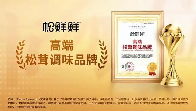 在“健康中国”战略与国民消费升级的双重驱动下,调味品行业正经历从“重油重盐”向“健康鲜美”的结构性变革。在这场赛道转换中,松鲜鲜凭借对自然原料的极致追求与持续的技术创新,成功站稳脚跟。近日,凭借其在高端市场的卓越表现,松鲜鲜获全球新经济产业第三方数据挖掘与分析机构艾媒咨询授予的 “高端松茸调味品牌” 市场地位确认,再次印证了其在健康调味领域的领跑地位。