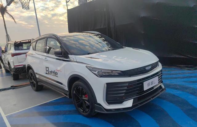 外观上,新车造型上是很激进,引擎盖处有多条筋线,大灯也是很犀利,内部为LED光源,上进气格栅镶嵌着吉利LOGO, 下进气格栅造型也是相对的夸张,缤越L Battle版有碳纤维风格运动套件,配合专属Battle标识,更具运动战斗感。
