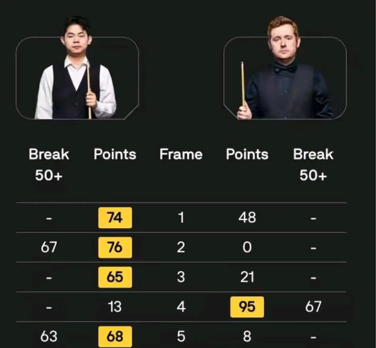 比赛伊始,袁思俊便迅速进入了比赛节奏,丝毫没有受到客场作战氛围的影响。他通过精准的走位和细腻的母球控制,牢牢地将比赛的主动权掌握在自己手中。首局,袁思俊便以一杆流畅的进攻先声夺人,迅速建立起领先优势。尽管本·沃拉斯顿试图通过顽强的防守来寻找反击的机会,但袁思俊在攻防转换间的处理显得游刃有余。他不仅在进攻端保持着高效的火力输出,在防守端也屡次通过精妙的斯诺克给对手制造麻烦,迫使沃拉斯顿出现失误。