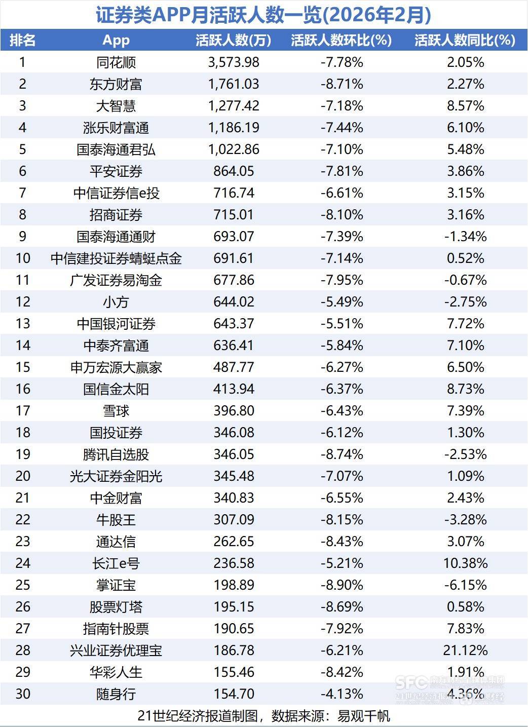 同花顺、东方财富、华泰证券……各大炒股软件最新月活数据出炉!